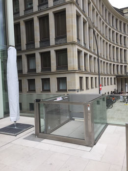 Insbesondere für Rollstuhlfahrer oder Menschen mit eingeschränkter Mobilität stellen Treppen eine große Herausforderung dar. Um einen sicheren und barrierefreien Weg zu gewährleisten hat Sümer Engineering eine Liftlösung für den Außenbereich der Hamburger Handelskammer entwickelt. Die Plattformhebebühne besteht aus einer hydraulischen und wartungsarmen Scherenkonstruktion, kombiniert mit einer modernen, funktionalen Edelstahl-Glas-Hubeinheit. Die vollautomatische Eingangstür wurde auf Kundenwunsch mit einem Verbundsicherheitsglas konzipiert und lässt sich über einen eingebauten Schlüsselschalter einfach und sicher bedienen. Nach Betreten der Plattform und Wahl der Fahrtrichtung, schließt sich die Tür erneut automatisch und Höhenmeter können sanft überwunden werden. Integrierte Sicherheitsendschalter und Verriegelungselemente aus der Aufzugstechnik sorgen dabei für eine sichere und einfache Bedienung.